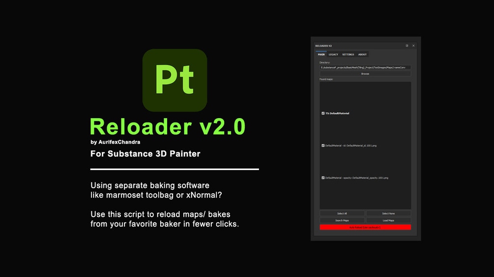 Reloader v2 is a Python script for Adobe Substance 3D Painter that simplifies the process of loading and reloading mesh maps.